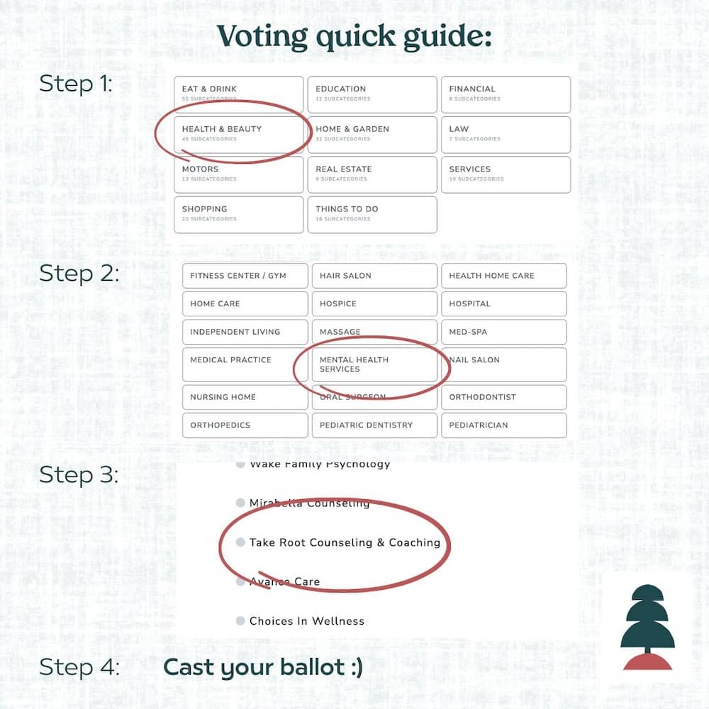 Voting is simple, takes seconds, and does not require creating an account. Thanks for considering us! Extra special thanks to Mallory Rodgers founder of Long Leaf Counseling and Collaboration for letting us know we were nominated!